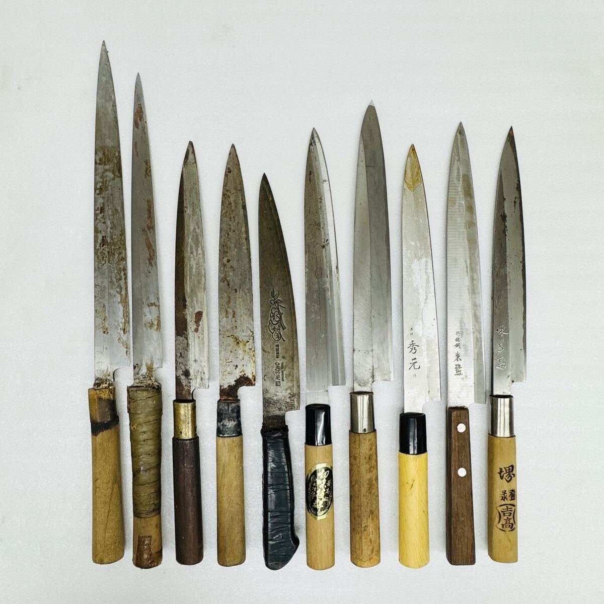 - 柳刃包丁 まとめて10本 中増 堺吉髙 MISONO 岩城 東撈弘 濃州秀元 朱鷺 その他 大量 刺身包丁 和包丁 庖丁 (090701