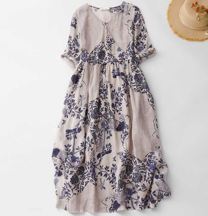 - 新入荷大人気ナチュラル ポケット付き 気質 通勤 花柄ワンピース 復古風 夏 半袖 きれいめ プリ ント柄 ミモレ丈 ロングワンピース