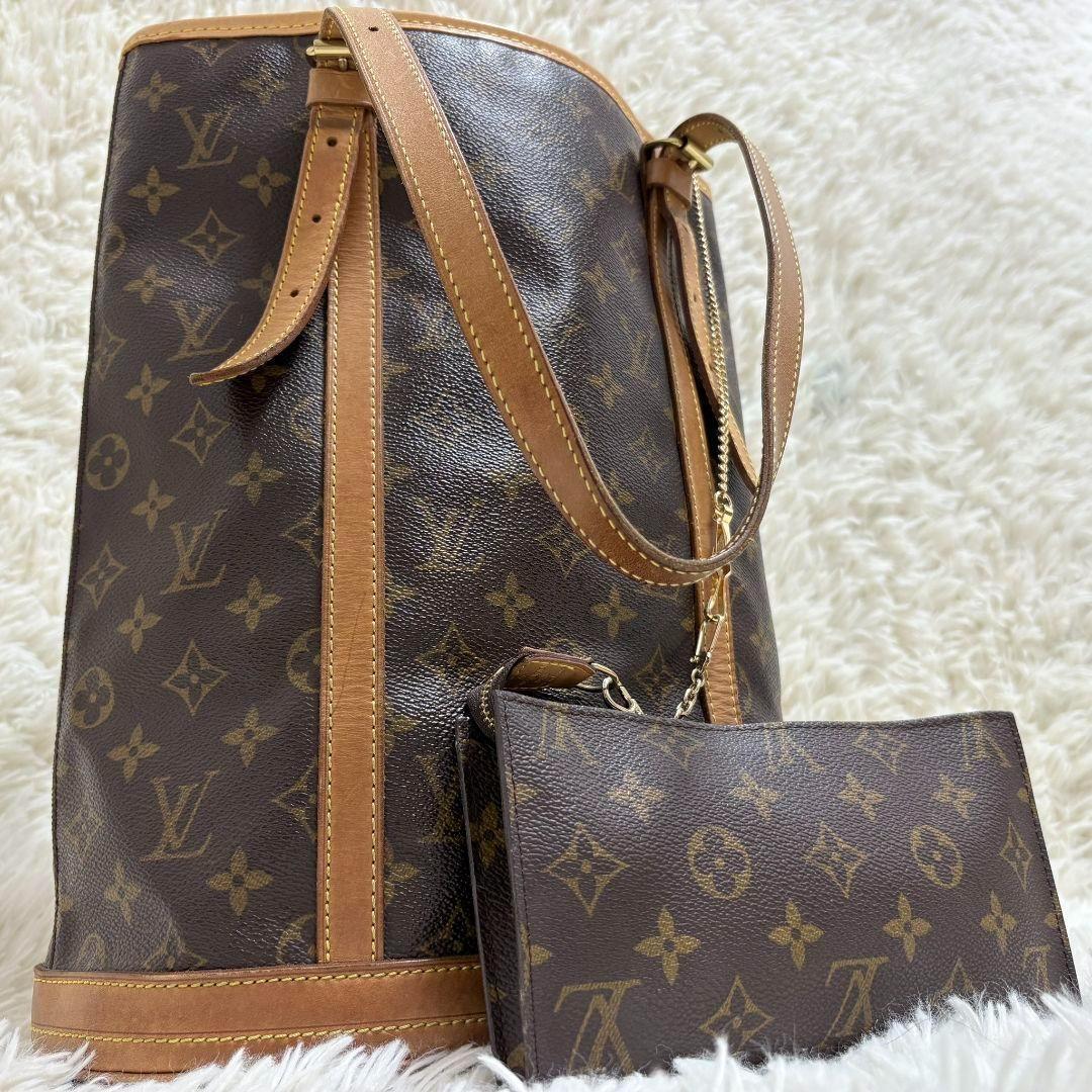 > 美品◎正規店内側張り替え済 ルイヴィトン LOUISVUITTON バケットGM モノグラム トートバッグ A4可 ポーチ付き M42236 DK2088 レザー