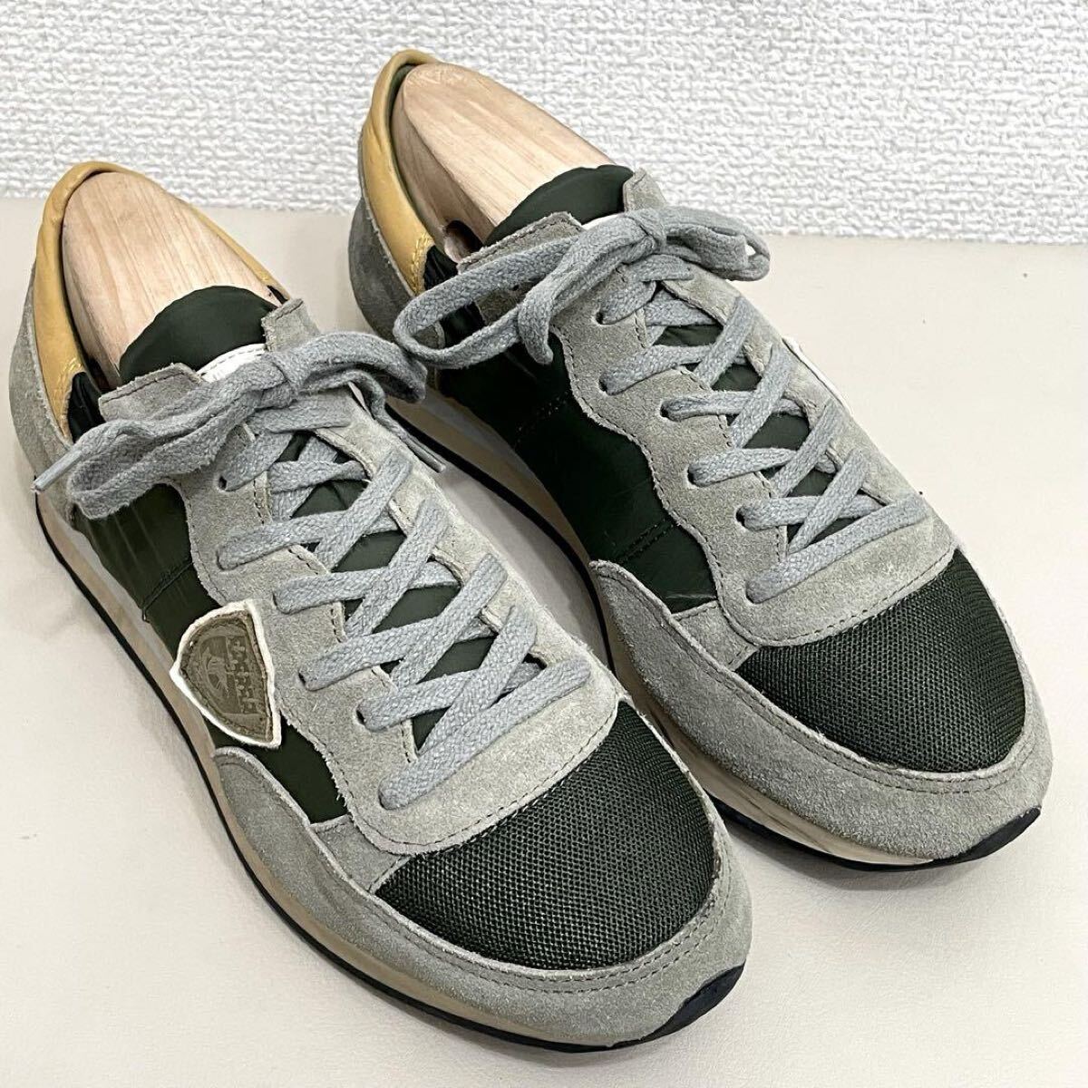 - 【良品◎】PHILIPPE MODEL フィリップモデル WX75 EU38 24cm相当 スペクテイターシューズ カーキ スエード、ナイロンコンビスニーカー