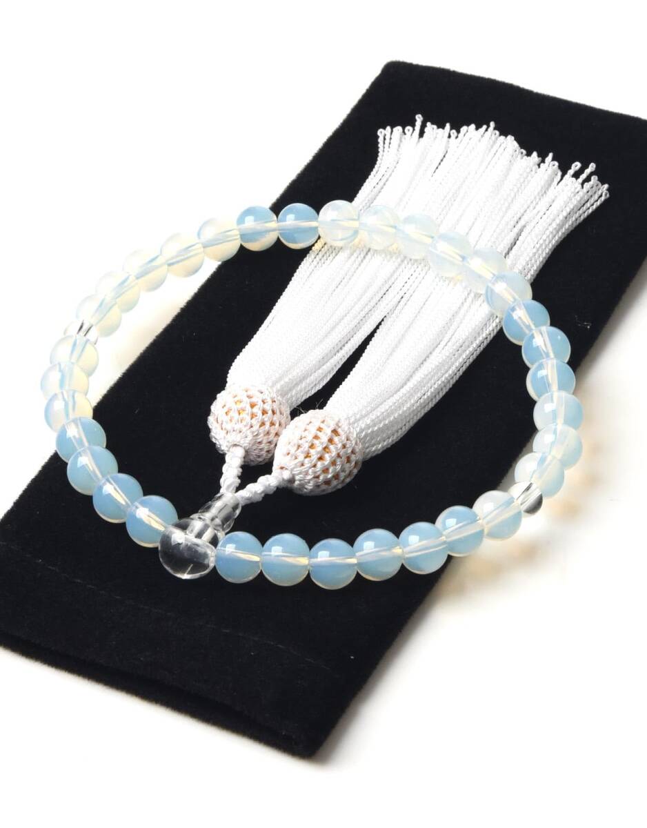 - 【在庫処分】数珠袋付き 葬儀 天然素材 葬式 京都職人手作り 8mm 頭房 女性用 [オパール] 数珠 EsuonHappines