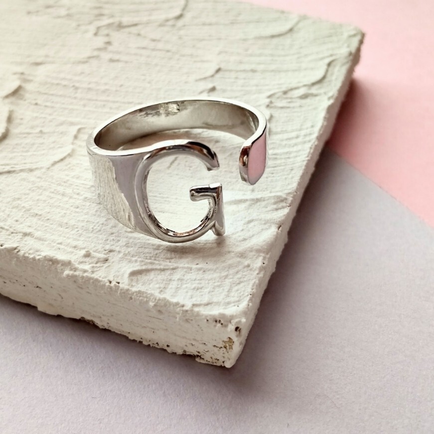 - イニシャル オープンリング G シルバー 指輪 ペア 韓国 推し活 #74