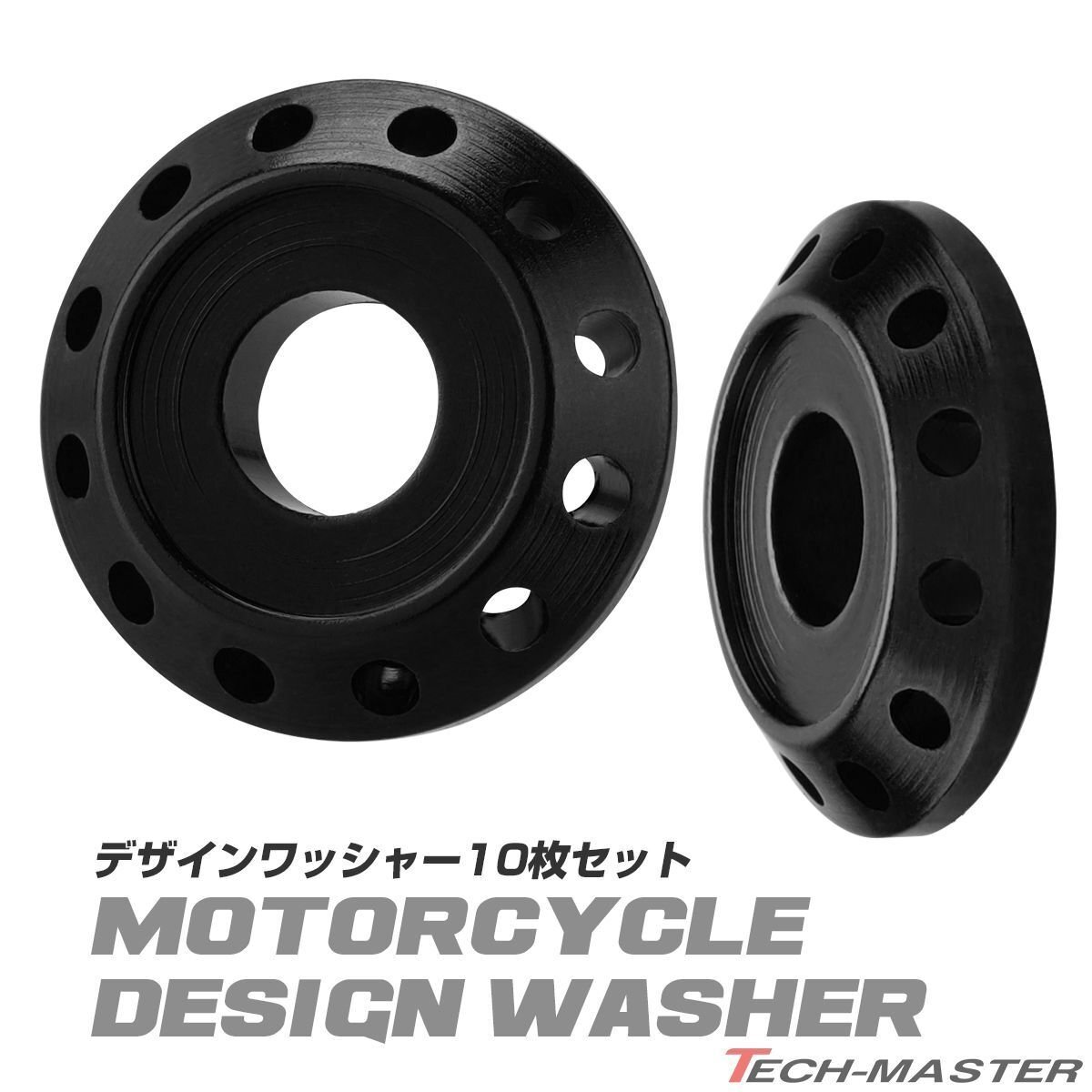 - M6 デザイン ワッシャー ブラック 10枚セット アルミ製 ボルト周りのドレスアップに 外径19mm TH0014-BK