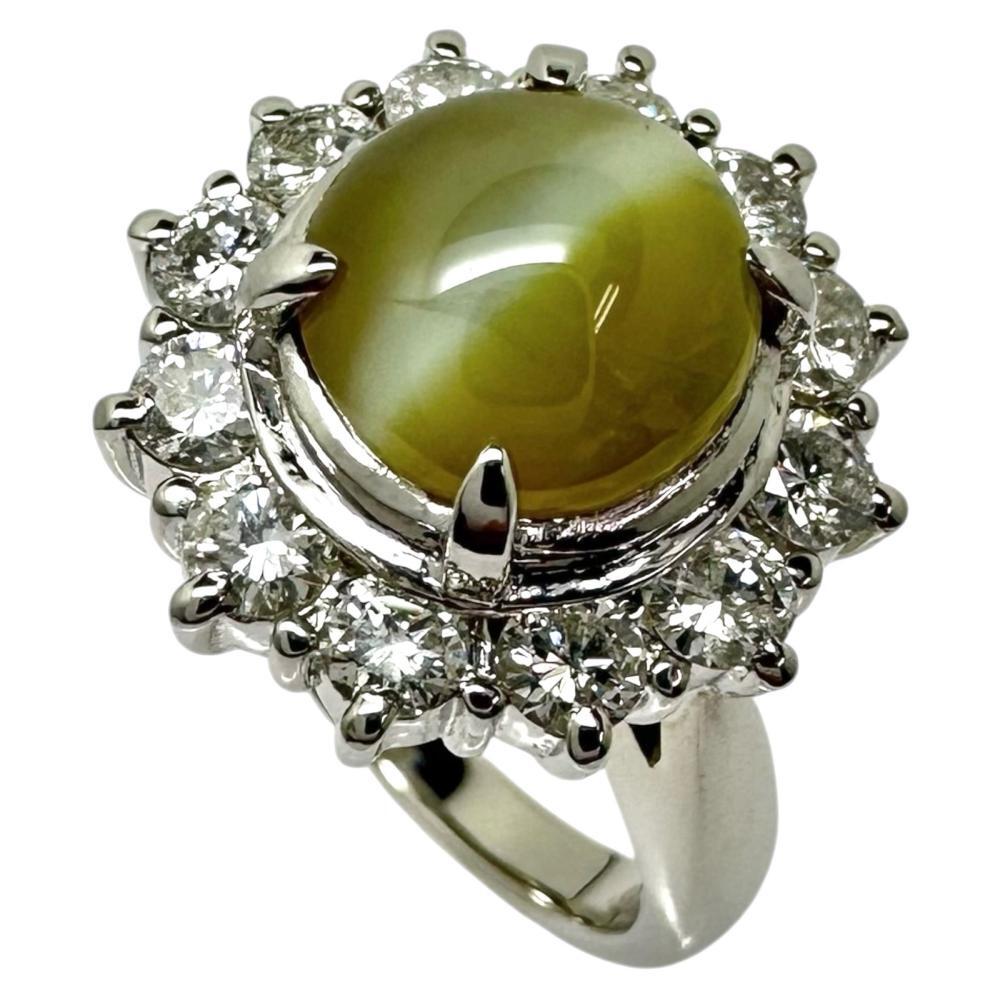 > 11号 クリソベリルキャッツアイ 3.95ct ダイヤモンド 計0.96ct リング・指輪 Pt900プラチナ 10.6g レディース
