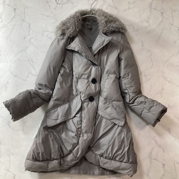 > 【L】レディース マックスマーラ ロングダウンコート アウター リアルファー リアルファー ダウン90% 羽毛 グレー系 Max Mara B1344
