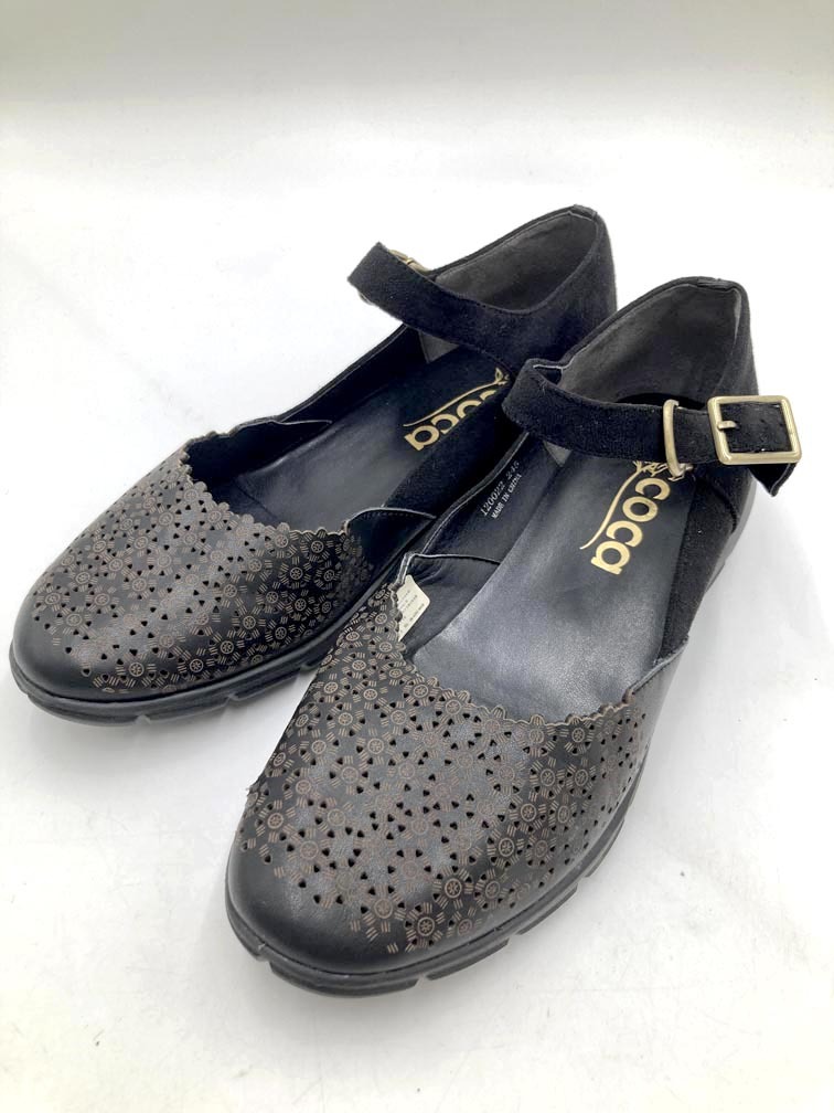 - coca コカ 120022 パンチングレザー アンクルストラップ フラット パンプス size24.5/黒 ■■