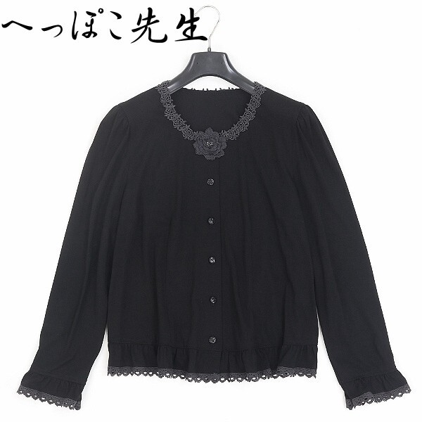 > 【HA261】◆へっぽこ先生 レース使い フラワーモチーフ ギャザー 切替 カーディガン 黒 ブラック×チャコール バスト86~101