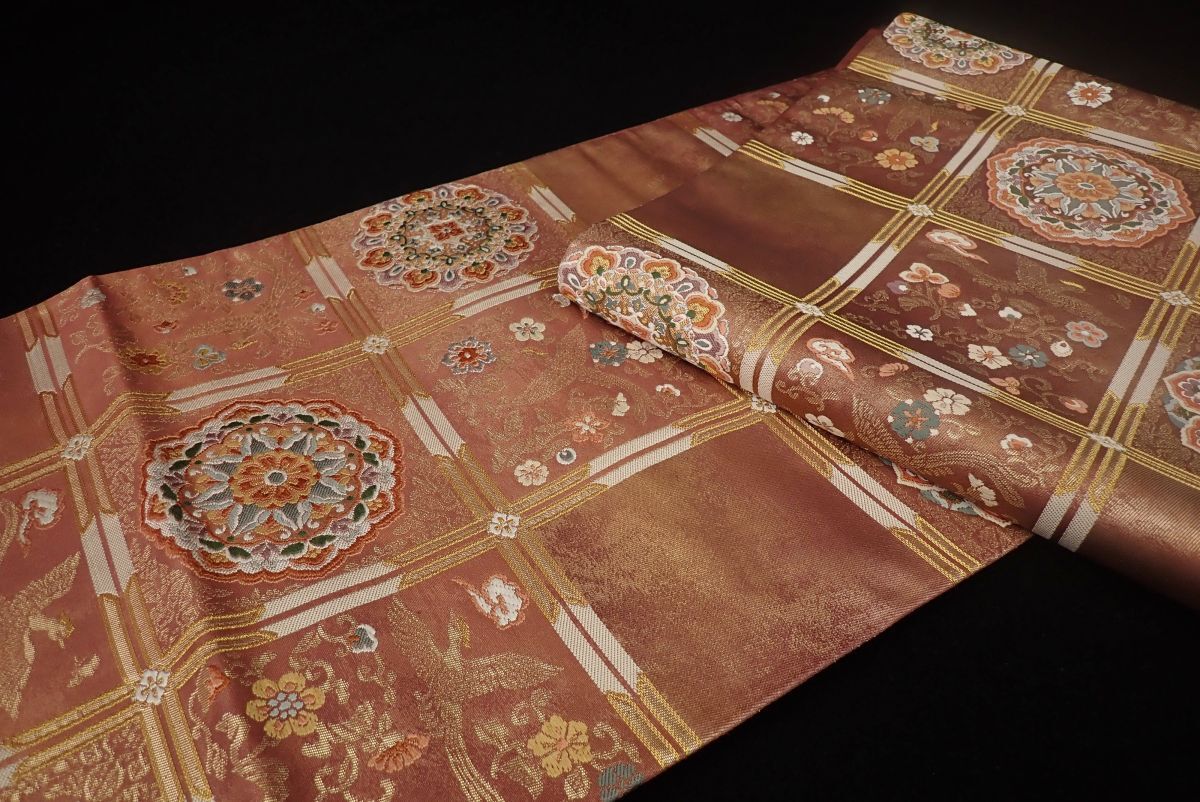 - ■帯34 美品 袋帯 河村織物 落款 正倉院麗華文 手織り 金示箔■和装品/和装小物/消費税0円