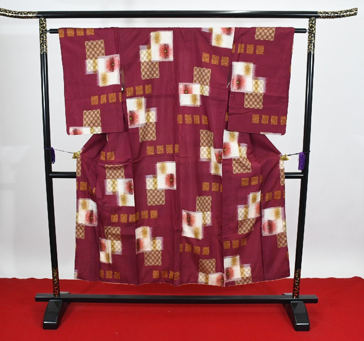 > メイセン 銘仙 花 正絹 身丈142cm 裄丈62cm ★着物 pb-3610 桜庭呉服店