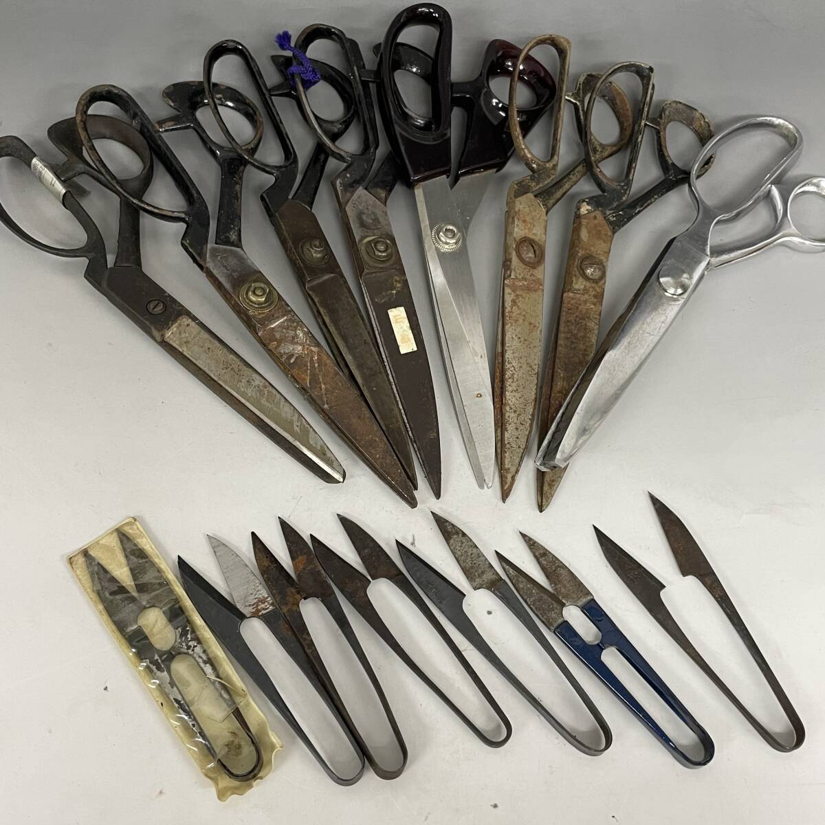 - KF13/48 裁ちばさみ 糸切り鋏 まとめて 15本 洋裁鋏 裁縫道具 ピンキングバサミ 裁縫 ハサミ 和鋏 糸切りばさみ 在銘 江戸菊 銀峯 他◎