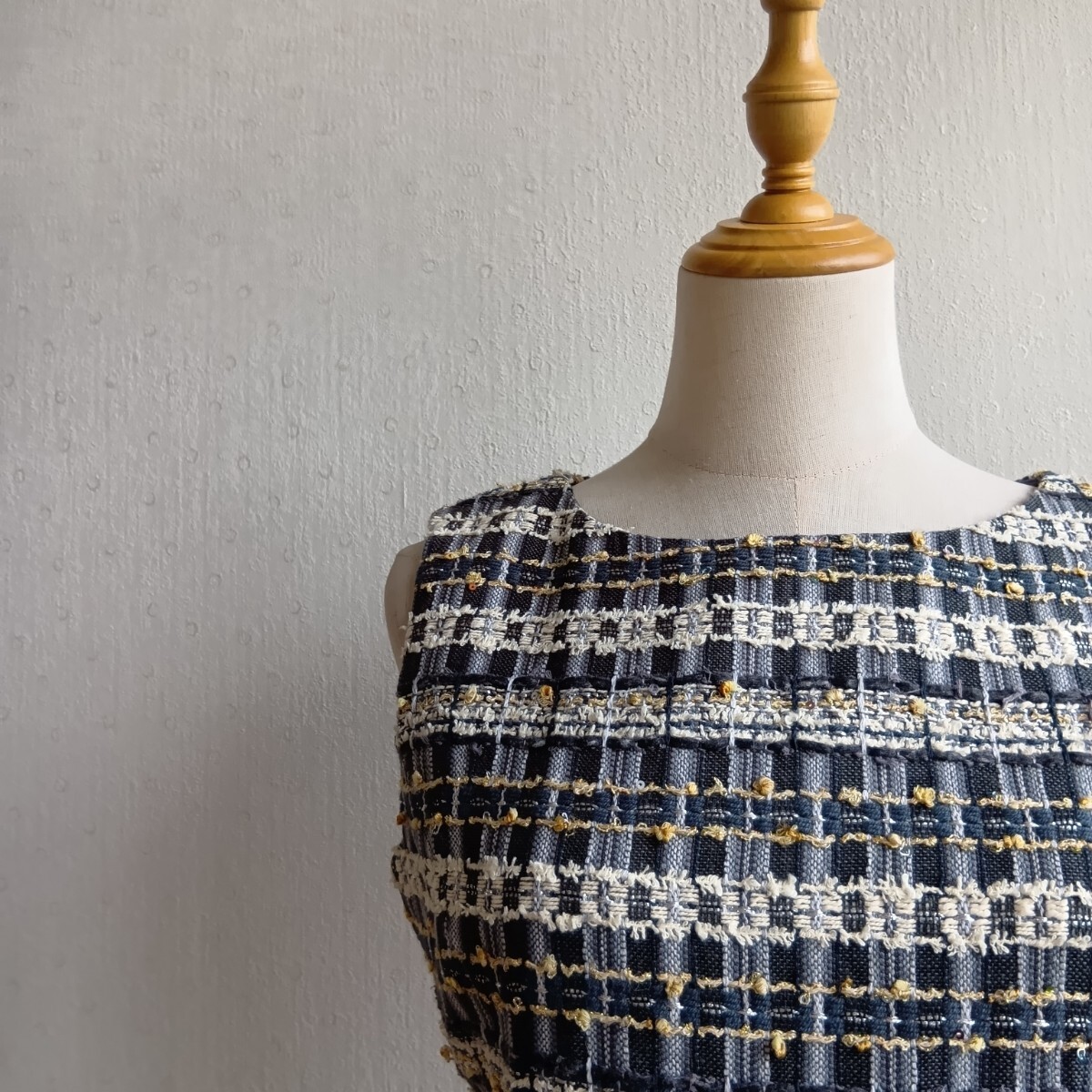 - DAMA collection ダーマコレクション ツイードワンピース スパンコール刺繍 グレー