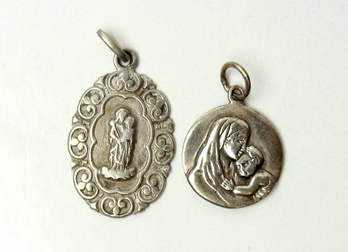 - 西洋骨董 アンティーク 純銀シルバー製のメダイ 2点セット 聖母子像 聖母マリア 幼子イエスキリスト 宗教美術 クロネコ宅急便60サイズ