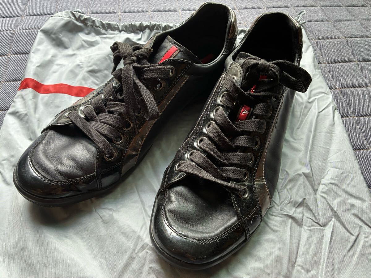 - プラダ PRADA スニーカー 黒 革 レザースニーカー
