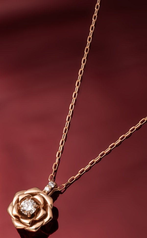 - K18YG ダイヤモンド ネックレス (ローズモチーフ) 品番n22-353