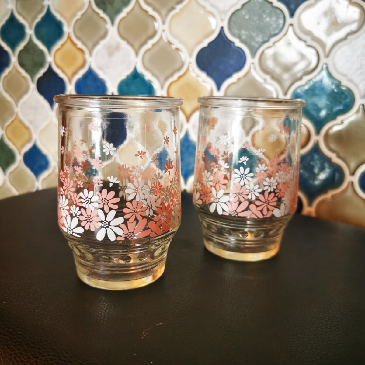 - 中古品 昭和レトロ ひやし飴グラス 花柄 2個セット 冷やし飴 ひやしあめ コップ レトロポップ