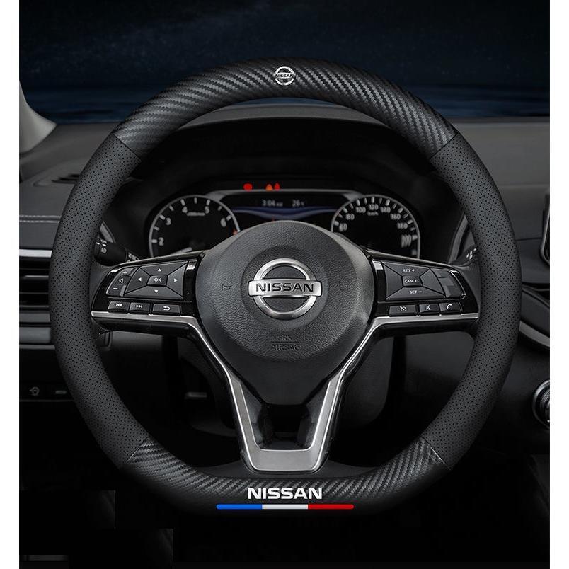 - ◆日産 ニッサン NISSAN◆ブラック◆ステアリングホイールカバー ハンドルカバー カーボン柄 滑り止め 専車ロゴ 直径38CM D型 ◆ブラック◆