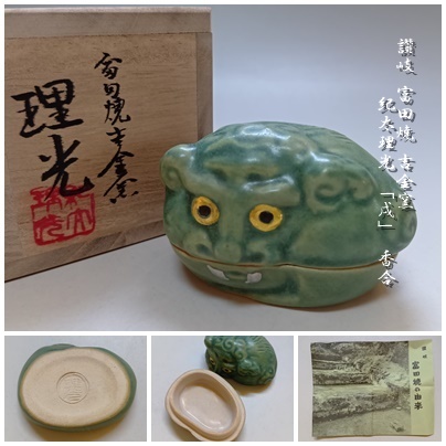 - 【K-19】讃岐 富田焼 吉金窯 紀太理光 「戌」 香合 共箱付 茶道具