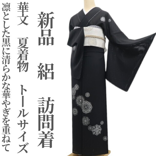 - tomihisa 新品 絽 華文 夏着物 正絹 仕付け糸付 トールサイズ”凛とした黒に清らかな華やぎを重ねて”訪問着 6702
