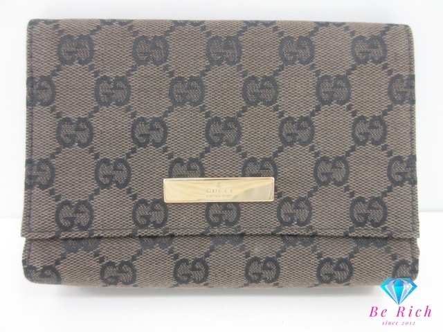 > グッチ GUCCI ポーチ 039.1105.1705 GG キャンバス レザー ブラウン ロゴ マルチ ケース 小物 【中古】bc2232