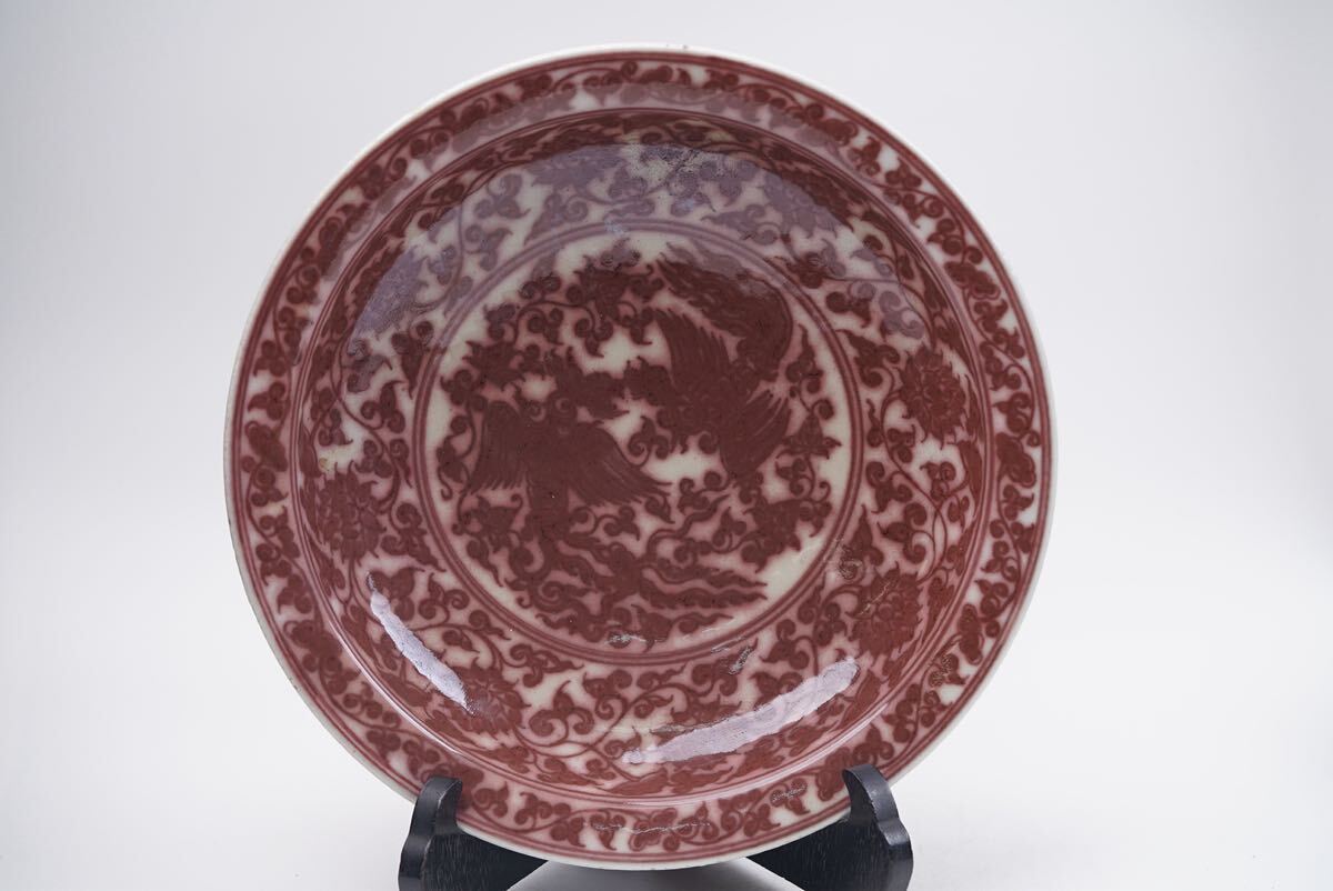 > 【竹華】中国古美術 明時代 釉裏紅 皿 古玩 骨董 時代物 当時物 唐物 骨董品 時代品 美術品 茶道具 置物 飾り皿