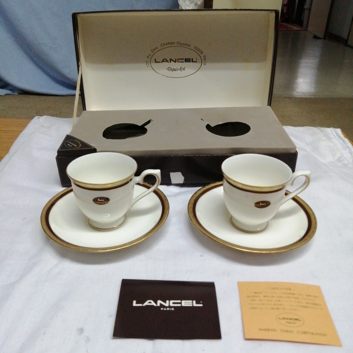 - 箱入未使用品 LANCEL パリ カップ&ソーサー 2客 ランセル 金縁 珈琲 紅茶 カフェ ブラウン