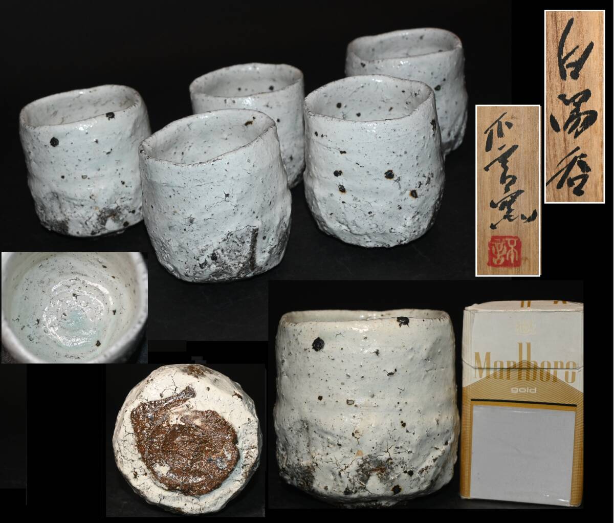 - 真贋保証■池西剛 作■ 不言窯 白湯呑 五客 共箱・布・栞付 大阪府吹田市生 5客 茶道具 茶器 煎茶道具 湯呑