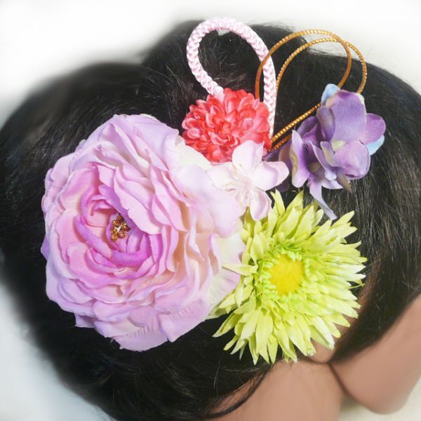 - 髪飾り 着物 袴 振袖 花 金鳳花cpとガーベラ ピンク 成人式 卒業式 結婚式 浴衣