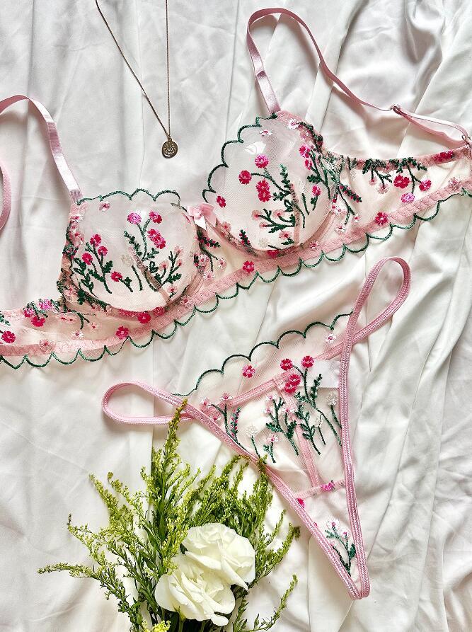 > 278 ブラジャーセットladiesレディース ◇ 魅惑Styleセクシー ◇ 刺繍 pink
