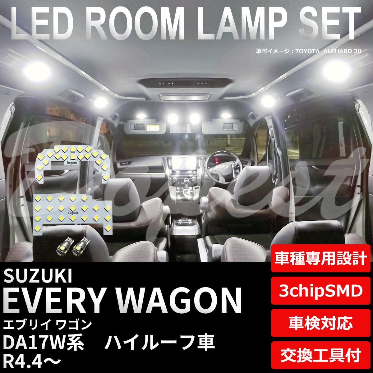 > エブリイ ワゴン LEDルームランプセット DA17W系 ハイルーフ車専用 R4.4~ 室内灯 6500K純白 専用設計 車検対応 車内灯