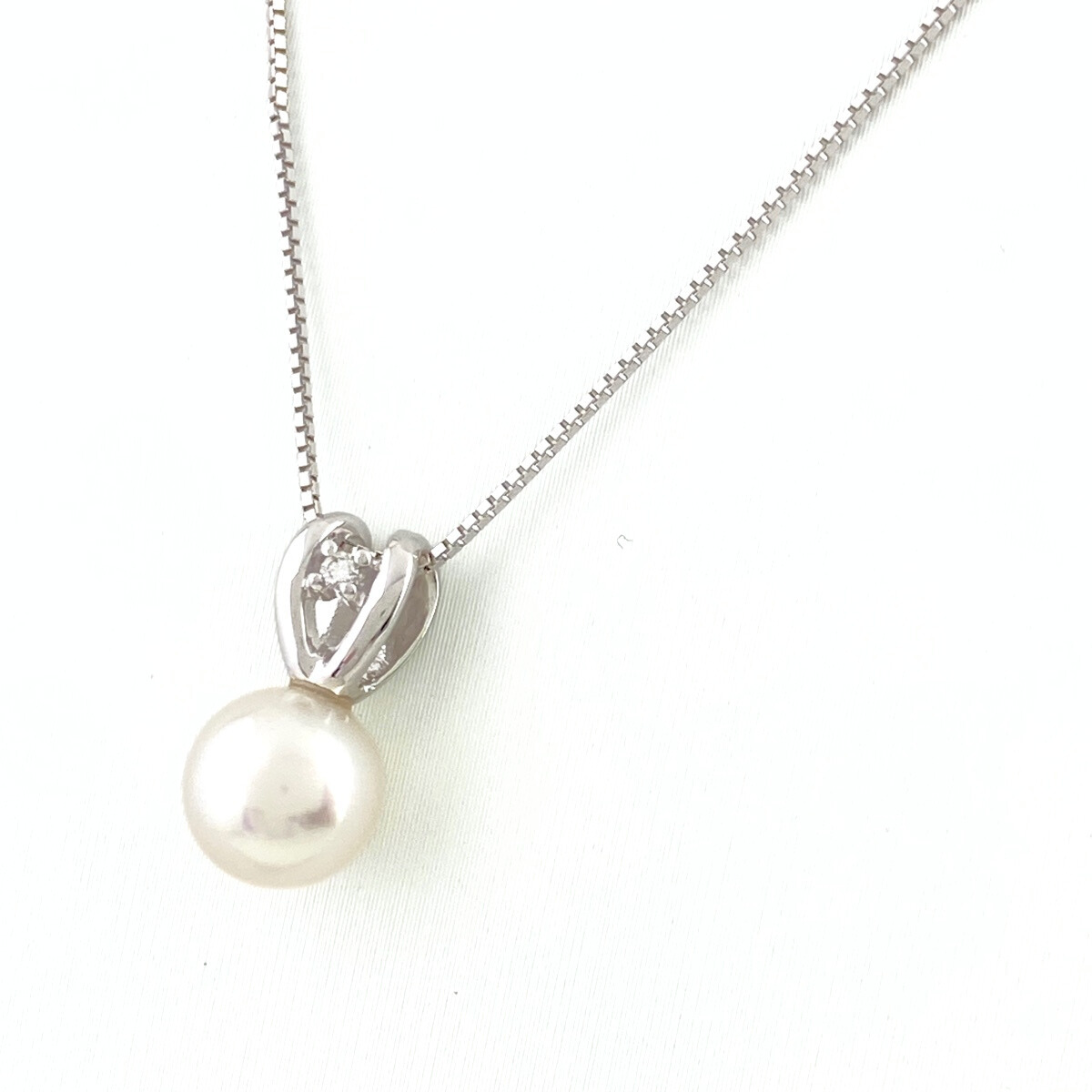 > タサキ TASAKI パール デザインネックレス WG ホワイトゴールド ペンダント メレダイヤ ダイヤモンド 真珠 K18 WG レディース 【中古】