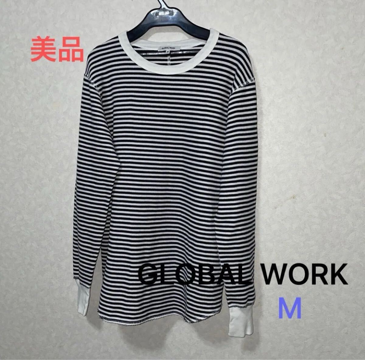 - 美品 GLOBAL WORK 長袖Tシャツ M ロンT カットソー ボーダー 長袖 Tシャツ ボーダー柄