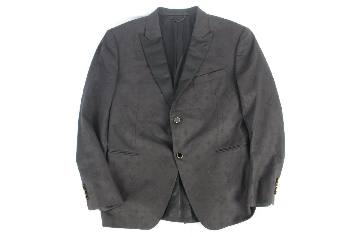 > ルイヴィトン LOUISVUITTON モノグラム総柄 テーラードジャケット タキシードジャケット 黒 ブラック ジャガード [56] HMFJ5E I8118SET/175