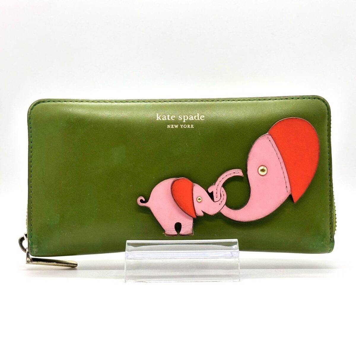 > kate spade new york ケイト・スペード 長財布 ラウンドファスナー 象 コンチネンタル ウォレット グリーン