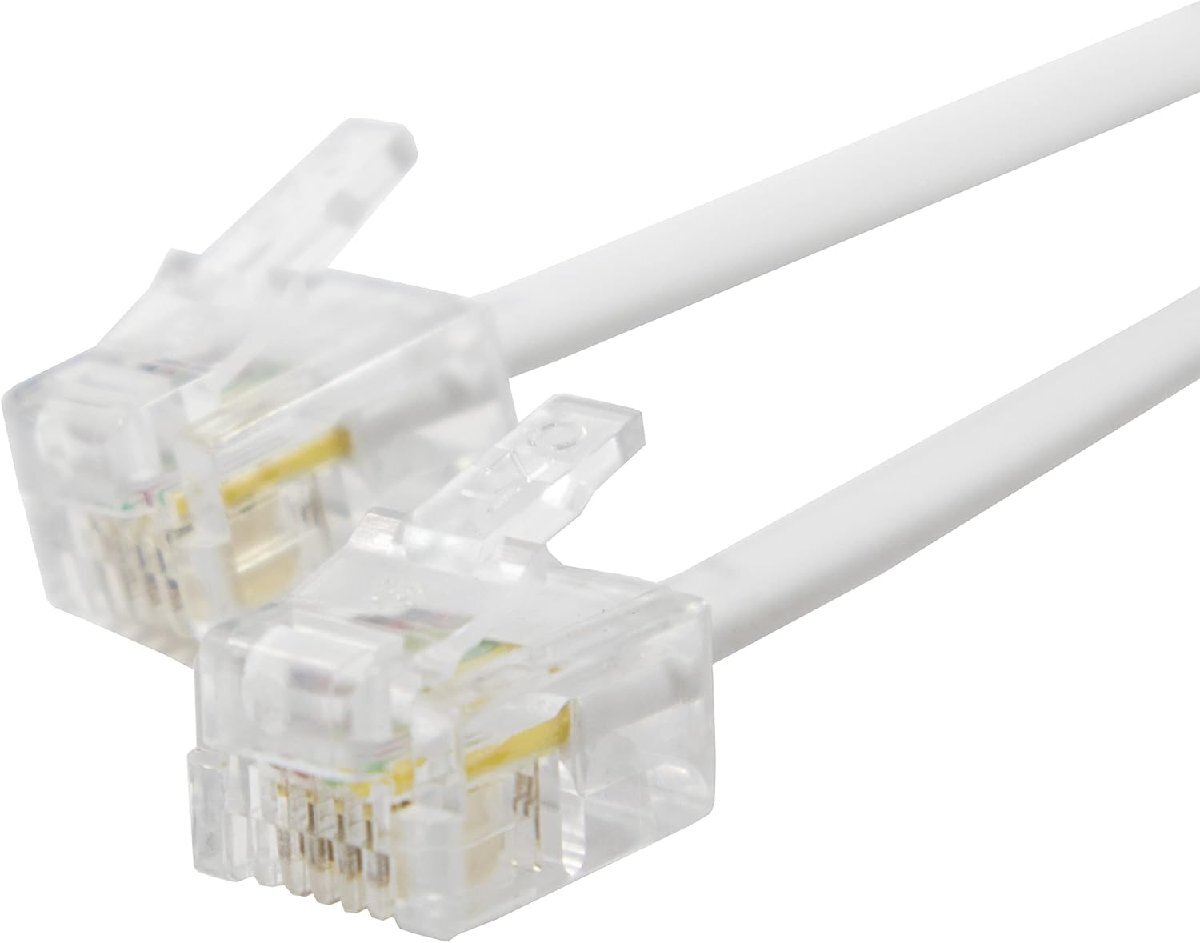 - モジュラーコード プラグ付き 6極 4芯/2芯 兼用 電話線 交換 補修用 ノーマルタイプ ホワイト 5m 簡易包装品