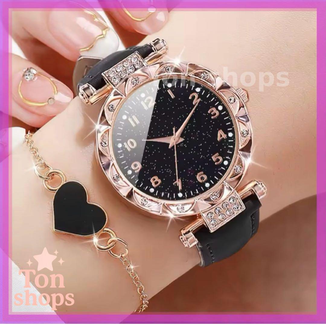 - スパンコールダイヤル腕時計 レディース ブラック ブレスレット付き