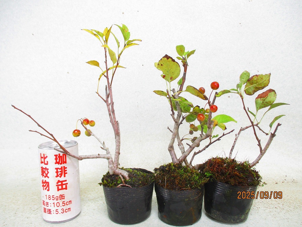 - [緑の市場]海棠 3点組 9/9実付~落果減少想定(9720黒ポット)全高:28㎝*同梱包対応「まとめて取引」厳守*80サイズ送料明記