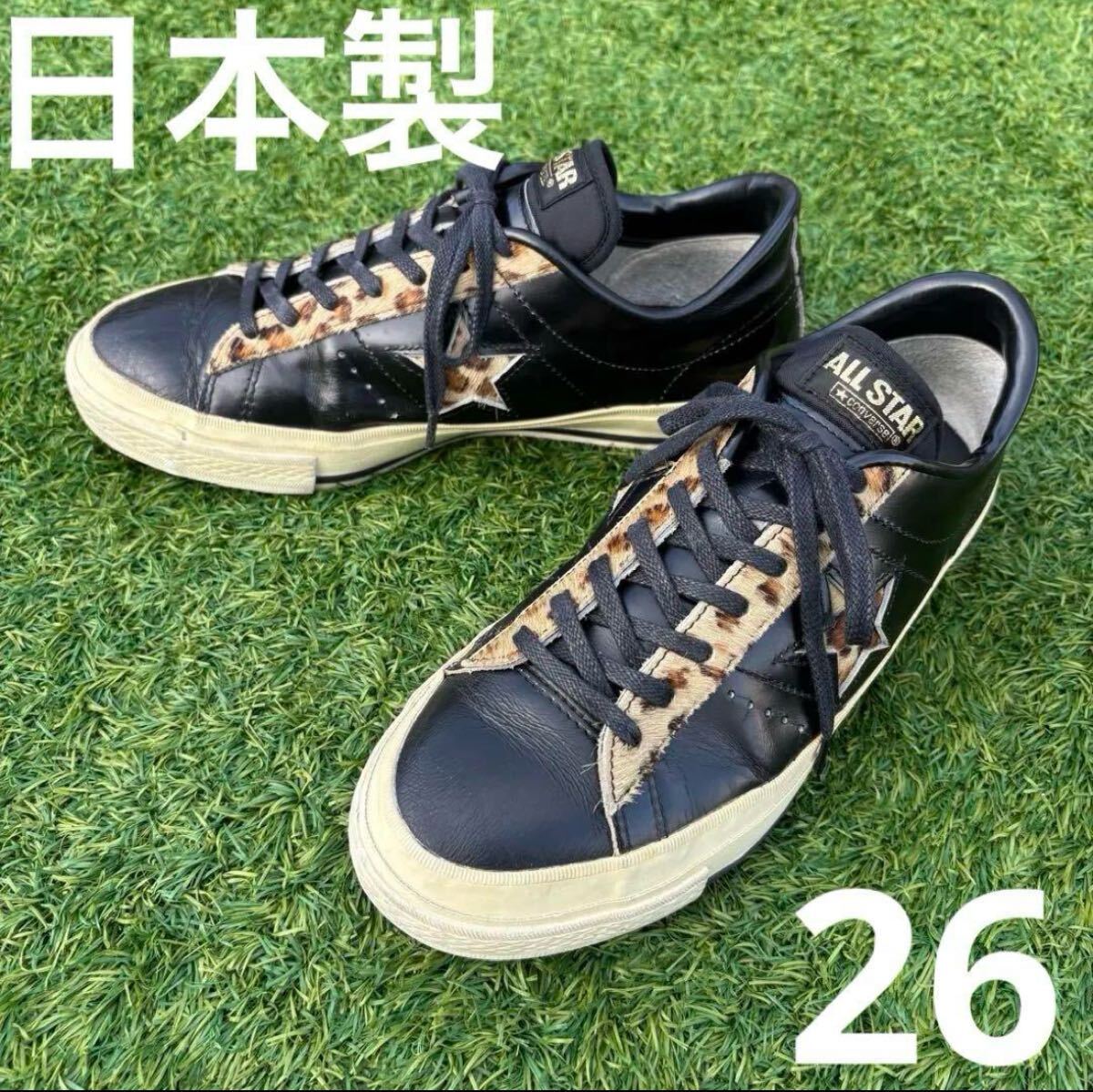 - 希少 26 日本製 コンバース ワンスター 黒 豹柄 ハラコ レオパード ヒョウ ローカット レザー スニーカー ハードコア パンク ロック 古着