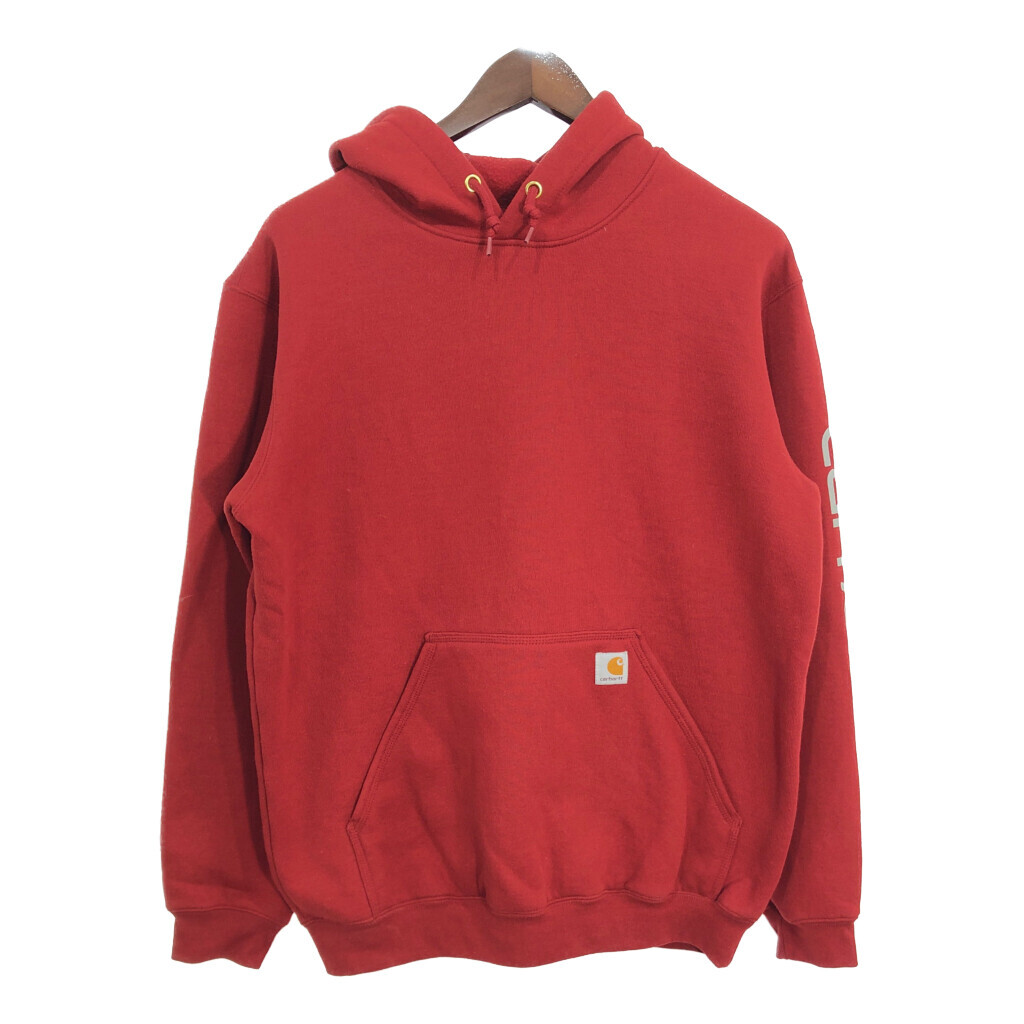 - Carhartt カーハート スウェット パーカー 袖プリント レッド (メンズ M) 中古 古着 R5238
