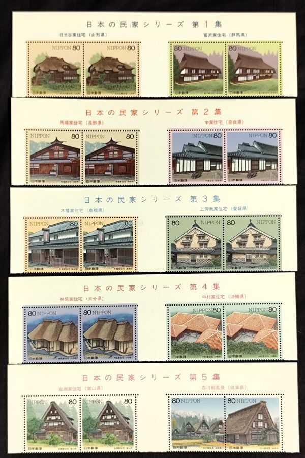 - [25091102]【日本の民家シリーズ 第1集~5集】ガッター全20種完 表題付「旧渋谷家 馬場家 木幡家 白川郷」80円×20 1997年~1999年 美品