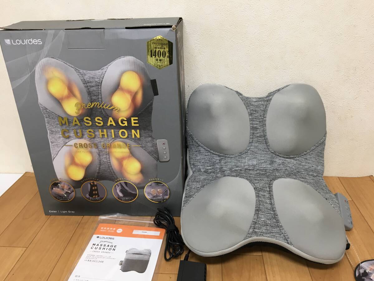 > T8-7.9) ATEX ルルド プレミアム マッサージクッション クロスグランデ AX-HCL348lg ライトグレー -1711