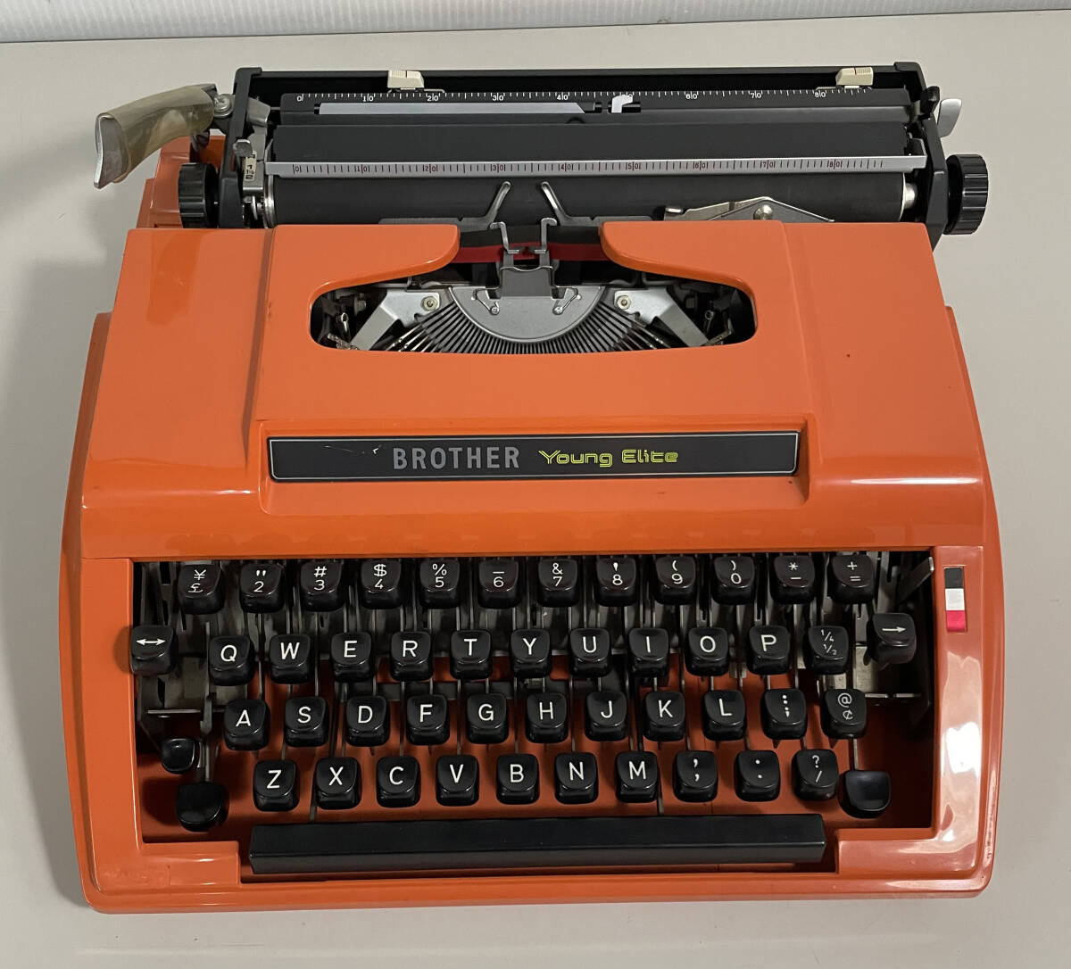- 昭和レトロ BROTHER Young Elite 手動タイプライター オレンジ/英字QWERTY・\記号あり ポータブル