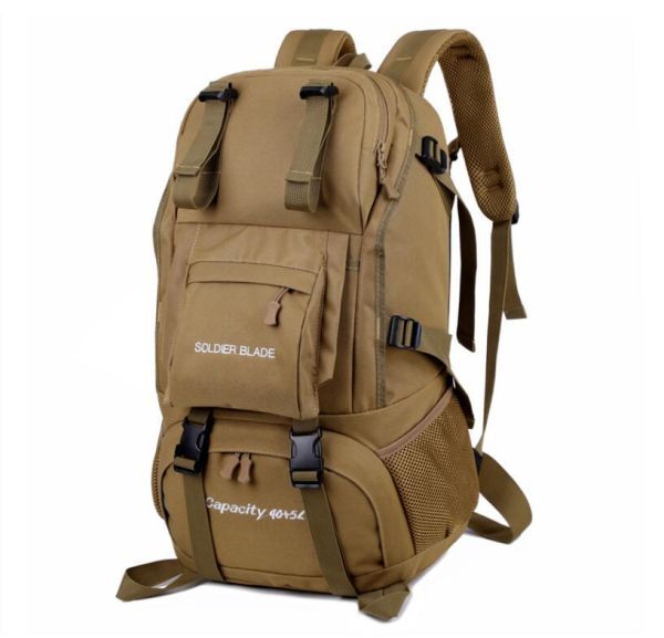 - 人気推薦 / 新品 上質 リュック バックパック 55L 大容量 多機能 丈夫 頑丈 通学 登山 旅行 1泊 宿泊 撥水 防災 パック / カーキ
