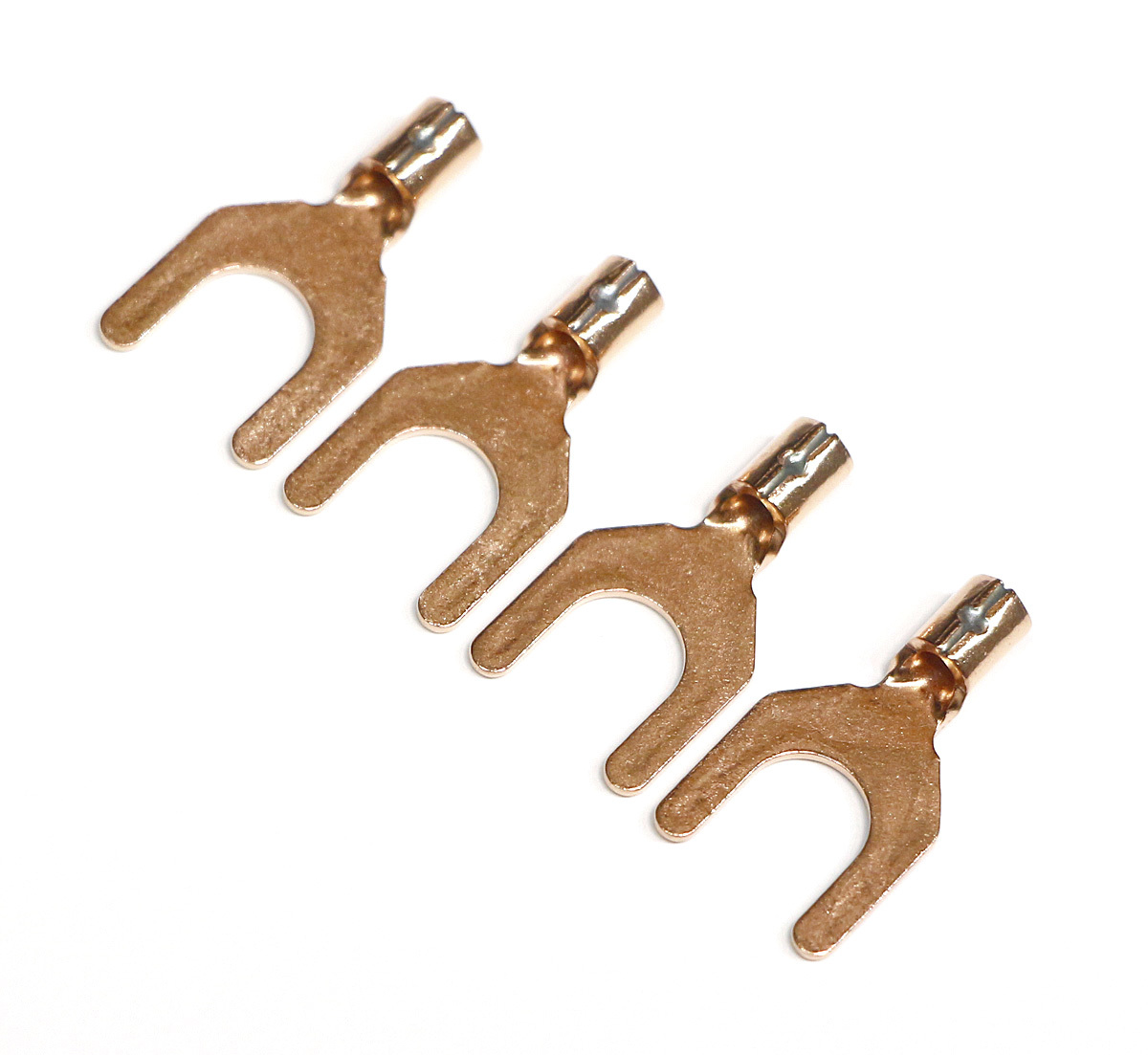 - ネコポス無料!非メッキ アース端子 OFC 高純度無酸素銅 Y端子 ポスト径~5mm Yラグ 圧着端子 日本製 1.25Y-5 4個set