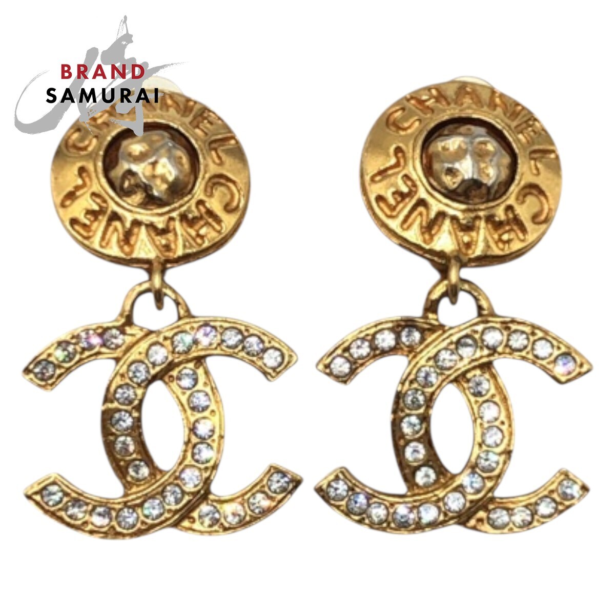 > CHANEL シャネル ヴィンテージ CCマーク ラインストーン ゴールド メタル イヤリング レディース 504798