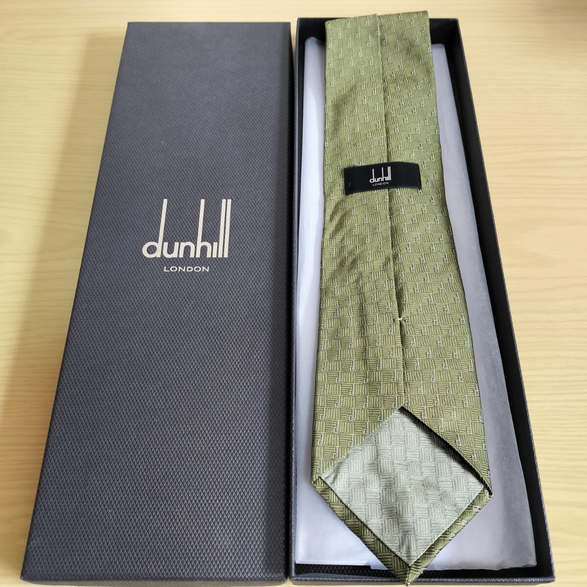 - ダンヒル(Dunhill)緑Dロゴミニ四角模様ネクタイ