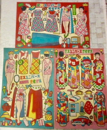 - 昭和の紙玩具★着せ替えあそび【ミスユニバース世界大会1959・児島明子】★3枚セット★《昭和のファッション》★新品★RNHー68