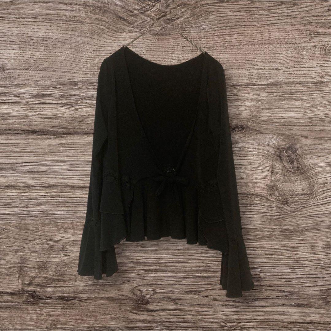 - 美品 アンナケリー カーディガン S相当 黒 フリル付き 前結び 長袖