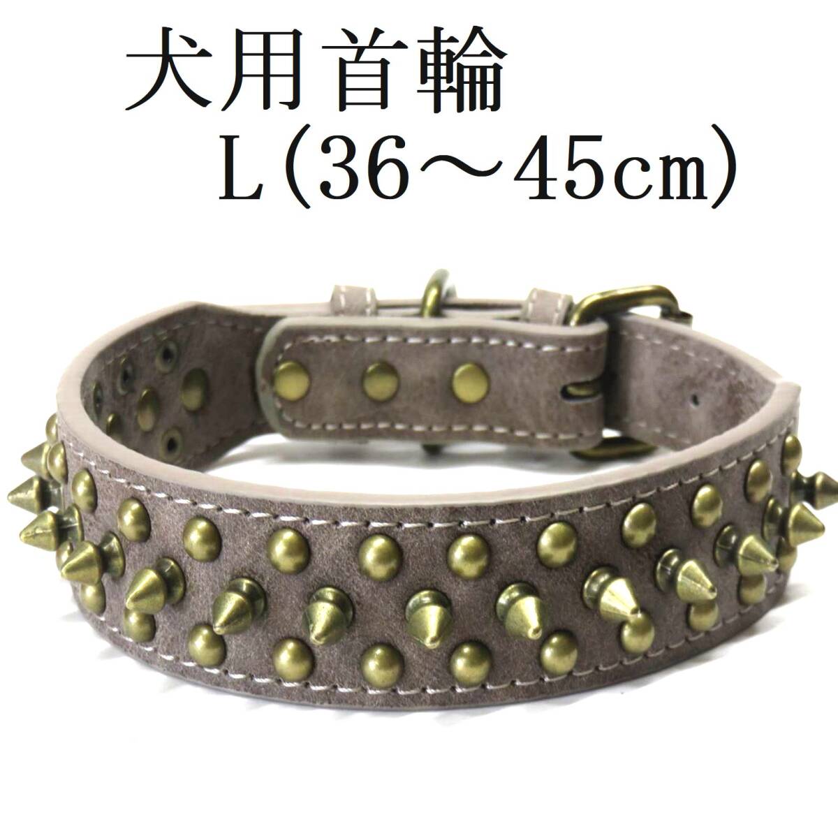- 首輪 L 灰色 首回り36~45cm前後 幅2.5cm 中型犬 犬用 グレー スタッズ付き首輪 PUレザー トゲトゲ カラー 散歩 スパイク 室内 ペット用品