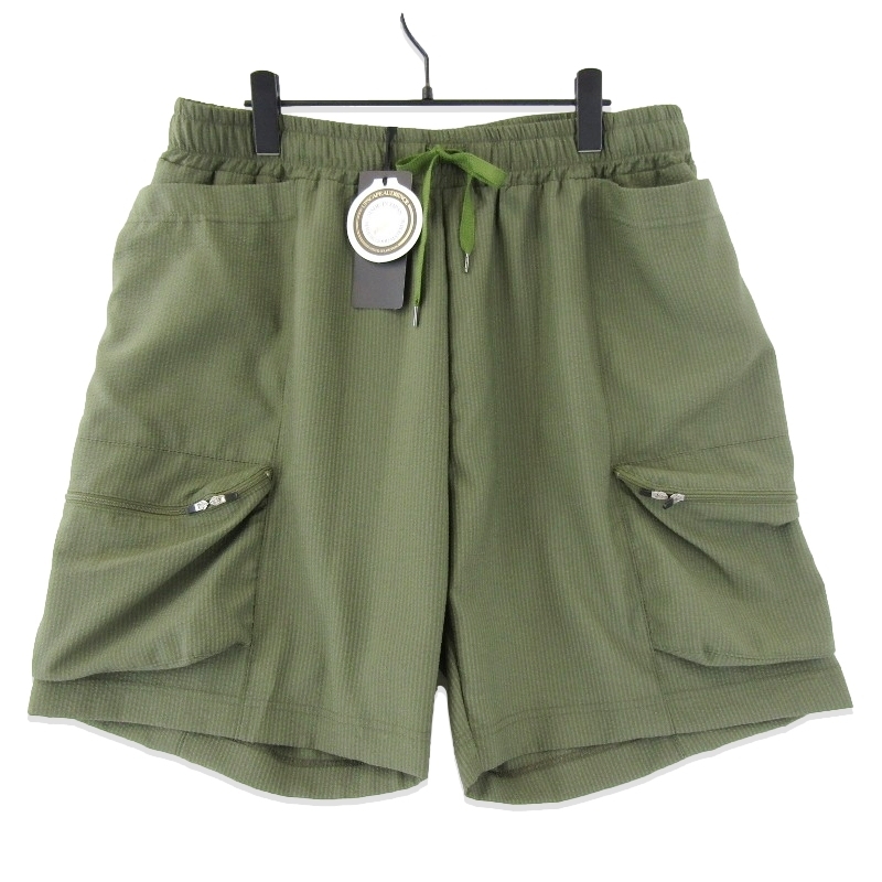 > 未使用 Audience オーディエンス ショーツ AUD3632 TECH サッカーストライプ ストレージ カーゴ ポケット オリーブ L タグ付き 18000987