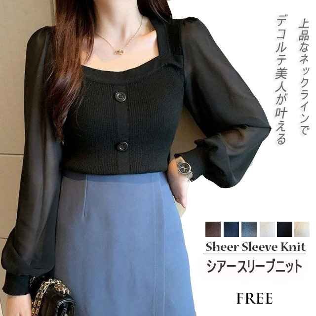 - レディース スクエアトゥネック リブニット プルオーバー ニット 日常 フリー ブラック